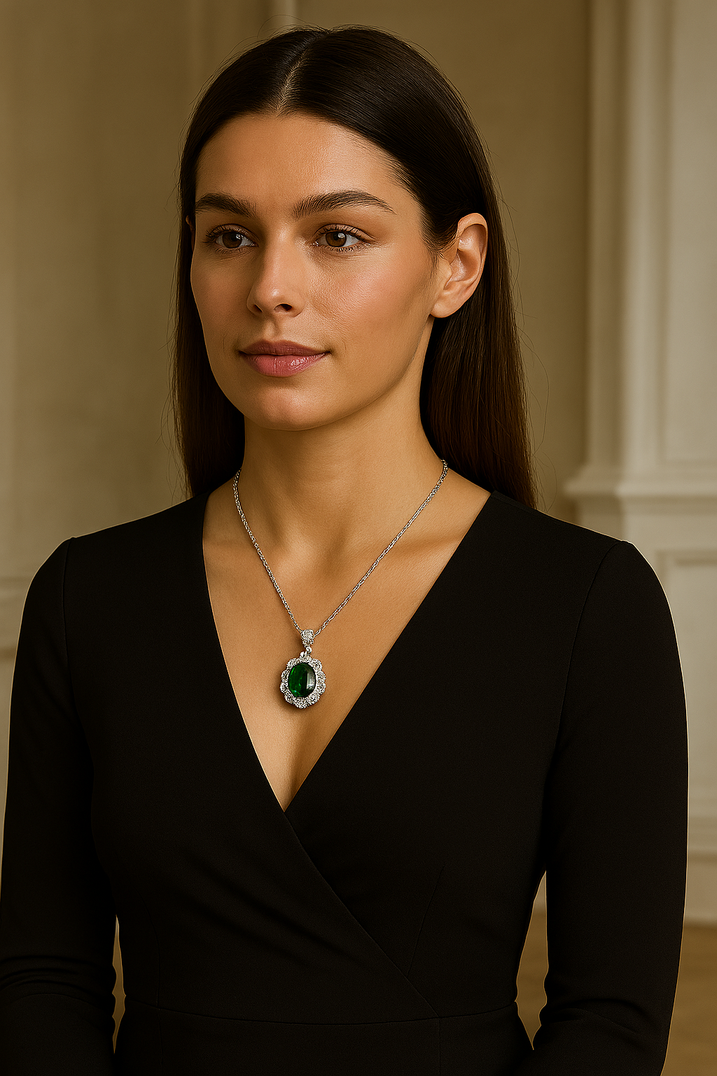 Colgante de plata 925 con esmeralda natural Eleva tu estilo con esta joya artesanal engastada con esmeralda auténtica y diamantes brillantes. Un diseño sofisticado que une lujo y sencillez, perfecto para regalar o lucir con orgullo.